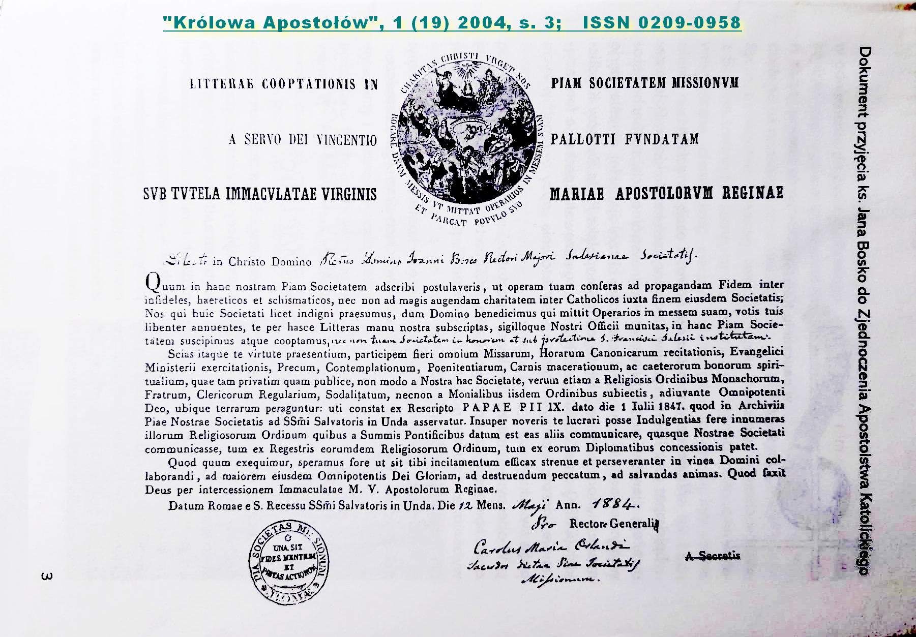 /Cf. "Królowa Apostołów" ["Queen of Apostles"] 1 (19) 2004, p. 2; ISSN 0209-0958/