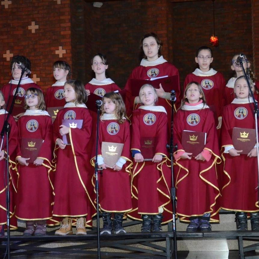 Dziecięca SCHOLA KRÓLEWSKA działa pod kierunkiem p. Elżbiety ....., katechetki SP 21, w gdańskiej parafii p.w. Chrystusa Króla, na terenie której od 75 lat istnieje wspólnota Sióstr Pallotynek, przy ul. Malczdewskiego 144, a od wiosny 2019 roku także Centrum Integracji Na Górce, której gośćmi byli dziś niektórzy członkowie tej scholi.