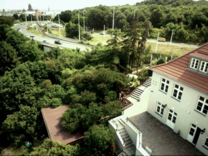 z przystanku „Pohulanka” lub „Powstańców Warszawskich": do domu zakonnego Sióstr Pallotynek (ul. Malczewskiego 144 por. zdjęcie niżej), dalej przez ogród wieloma stromymi schodami do góry, do Ogrodu Biblijnego i Centrum Integracji Na Górce.